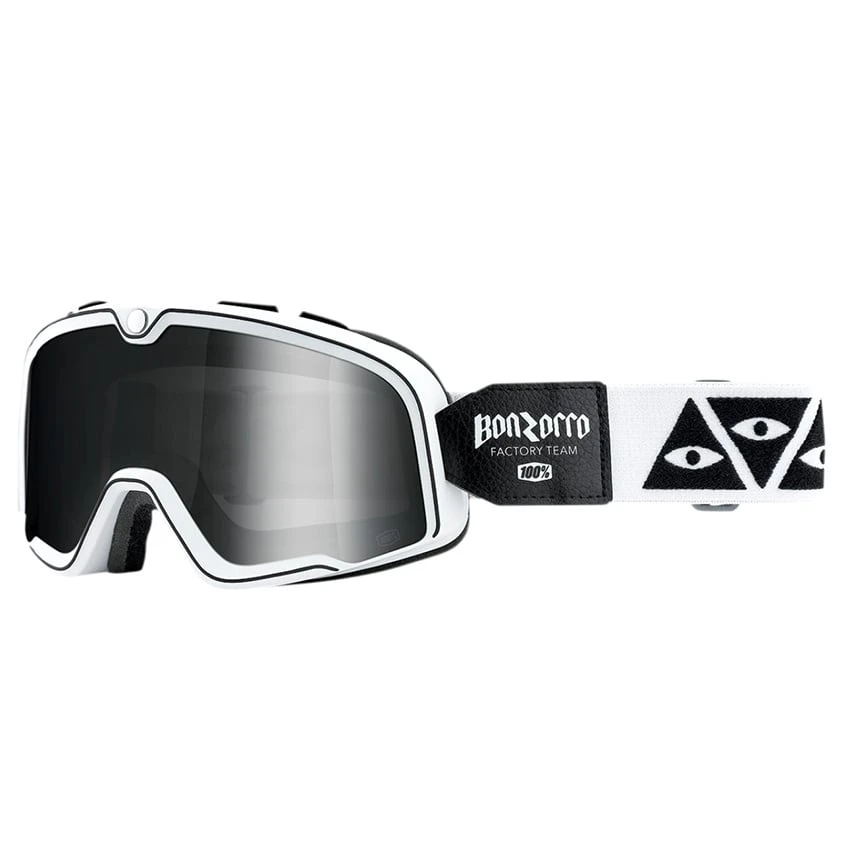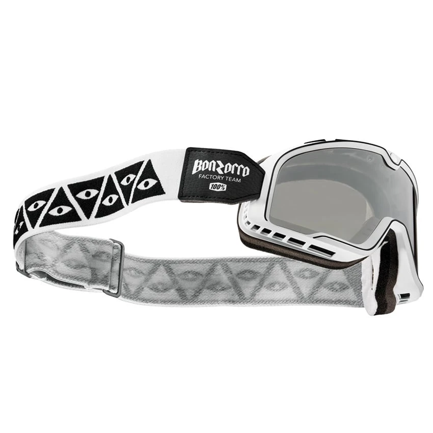 The 100% Barstow goggle Bonzorro fuses vintage moto design with modern styling and technology resulting in a timeless look with next level performance. The minimal frame design works in union with distinct lens shape to increase visibility and with a triple-layer face foam provides excellent moisture management. Featuring anti-fog polycarbonate lens with integrated pins for seamless tear off application and upper vents force air in and channel out moisture to reduce fogging. The strap trim elevates performance and adds rich detail.