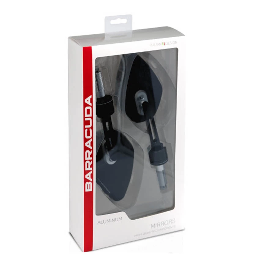 Skin-x bar end mirrors are e-marked and they are part of the high B-lux range. They are in aluminum with a special design signed barracuda, skin-x bar end are part of skin project, they are characterized by an essential design and a hi-tech appearence.