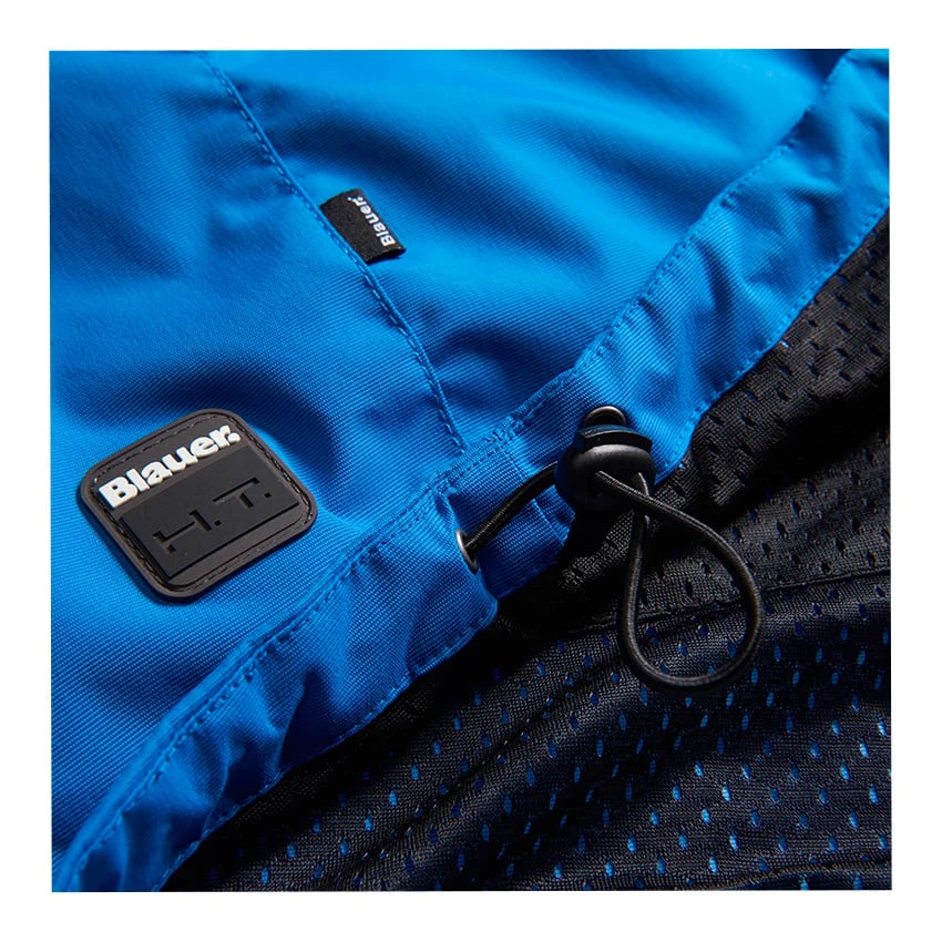 The Spring Pull Man is cut like a zip sweater, but much more like a motorcycle jacket. Made of 100% nylon, breathable and rain repellent. High quality workmanship, suitable for elbowand shoulder protections (included), back protections (not included). Frontal opening with coated zip and side opening with zip and snap button. Neck in knitted elastic fabric. Drawstring at the bottom. The frontal central pocket is also an air intake with outlet positioned at the back.