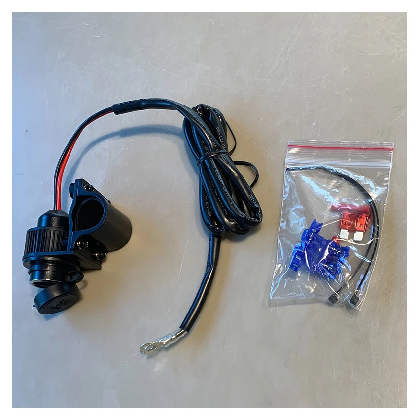 This power outlet is suitable for universal cigarette lighter plugs and is equipped with a waterproof sealing cap. Equipped with mounting bracket and various connection materials for a neat mounting on the motor. Total length cable 110-115cm.