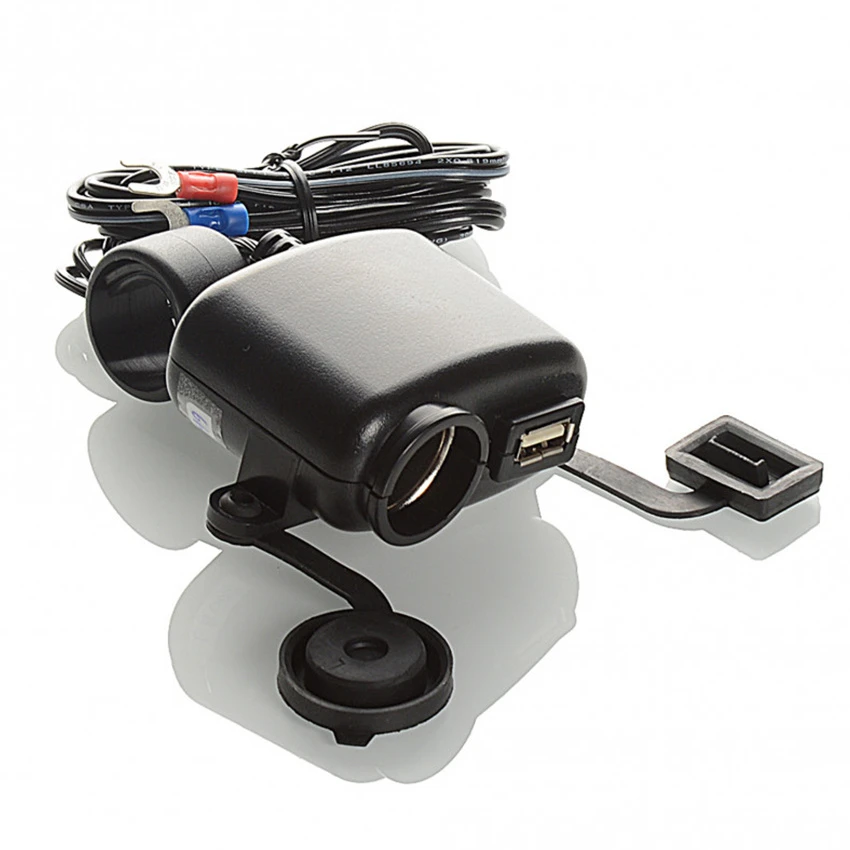 Equipped with 2 charging points so that you can charge different devices simultaneously. Mounted on the handlebar for easy access. Waterproof and equipped with 1.5m power cable.