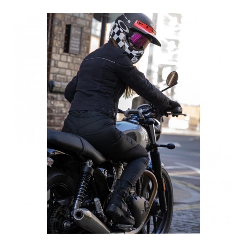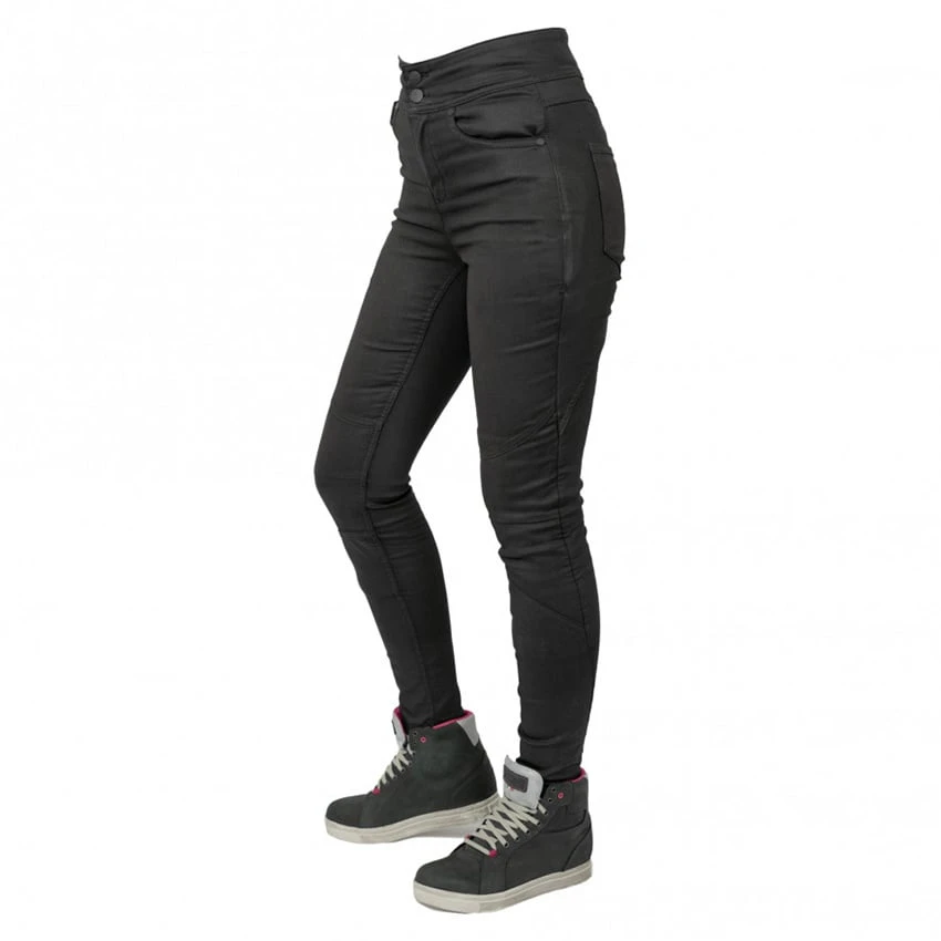 The Bull-it Fury X is a comfortable single-layer ladies motorcycle pants made of durable Covec material interwoven with a cotton outer layer. The single-layer construction increases comfort, it feels softer on the skin and is less warm compared to a double-layer jeans. Because no extra stitching has to be used to stitch a reinforced lining to the jeans the overall resistance increases. The Covec material is wear-resistant and helps prevent heat transfer through friction. The Fury X comes standard with protectors on the knees and is prepared for hip protection.