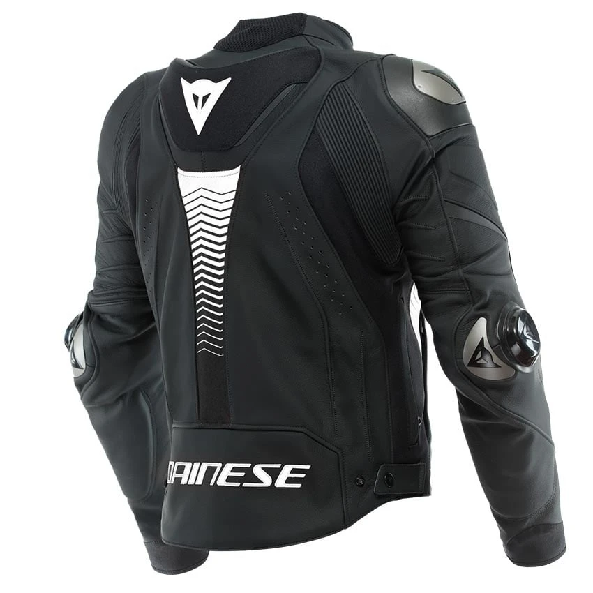 Dainese Super Speed 4 is the sports motorcycle jacket made of D-Skin cowhide with inserts in Microelastic 2.0 and S1 bi-elastic fabric, designed to adapt to the body and follow it in all its movements. Comfortable and featuring high levels of wearability due to the stretch construction on the abdomen and torso, Super Speed 4 Leather Jacket ensures great thermal comfort through ventilation zippers on the sides.