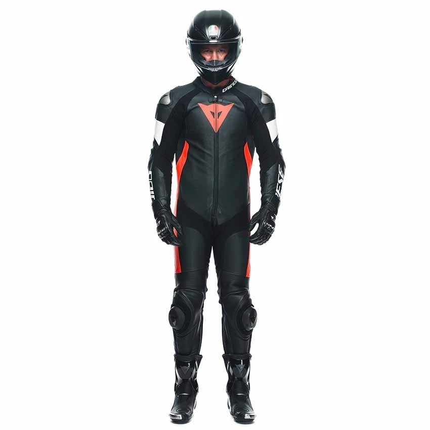 Dainese Tosa one-piece motorcycle suit with CE-EN-17092 certification made of premium perforated Tutu cowhide for optimised temperature on hot days. The classic Dainese fit is slim and fitted, while at the same time providing great freedom of movement due to the S1 elastic fabric inserts on the inner arm, groin, and back leg areas. The biaxial stretch fabric inserts on the back, as well as the stretch patches on the knees and shoulder blades, are designed to simultaneously protect all the skin, in addition to maximum flexibility and freedom of movement.