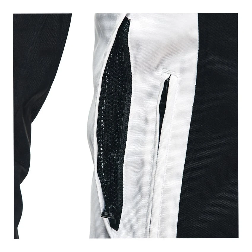 Composite protectors on the shoulders and elbows uphold Dainese safety standards and can be upgraded with a G1 back protector (sold separately). The jacket is also equipped with a zipper safety system for attachment to Dainese motorcycle pants. Reflective details ensure perfect visibility on the road. It also offers ample storage space with two external side pockets with zipper, a zippered pocket on the chest, and two inside pockets.