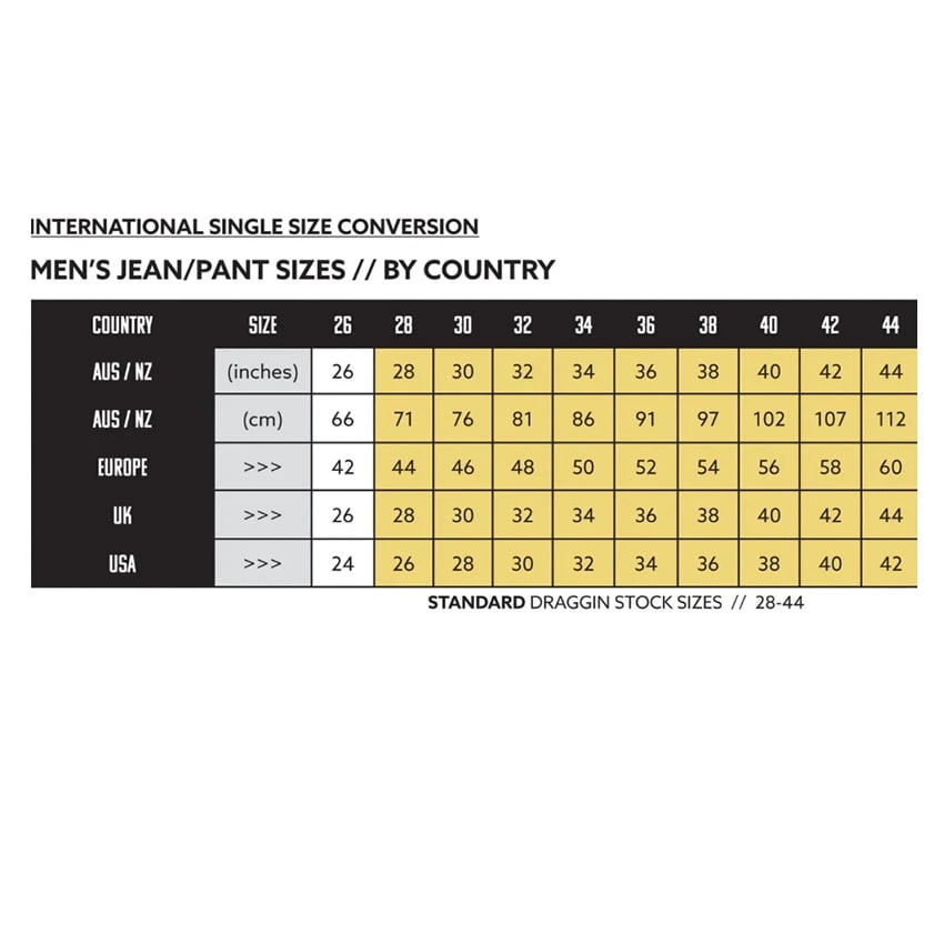 Everything you want in safe motorcycle clothing. Comfort. Wearability. Good looks. And they are affordable jeans. Add knee protection and you’ve got yourself the world’s best protection. Your skin will thank you for choosing the Draggin Biker jeans.