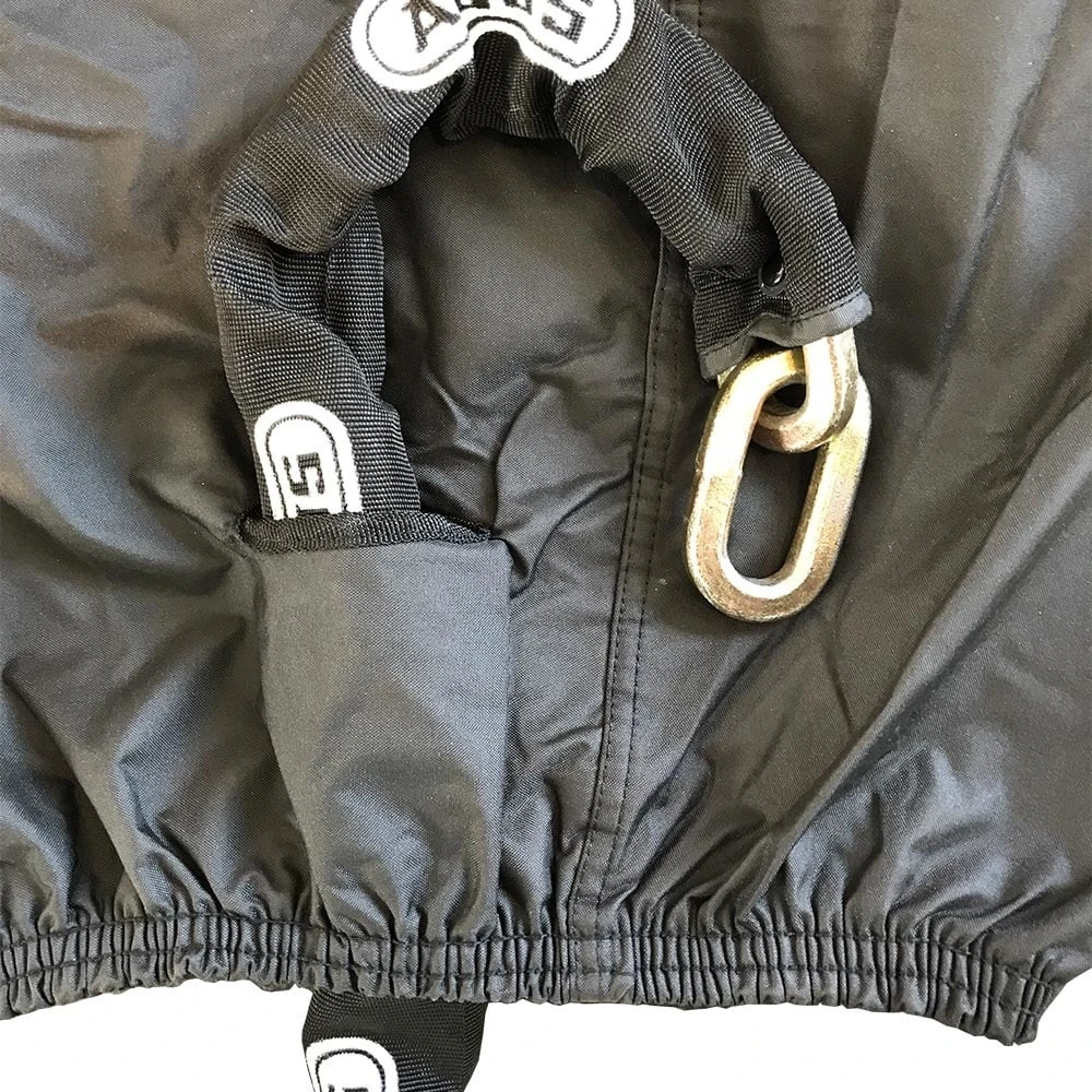 - Adjustable strap with snap closure holds cover in place.