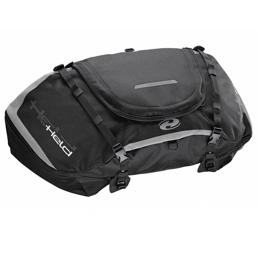 Waterproof saddle bag that is quick and easy to assemble using straps. From Held, the luggage brand to deliver top quality products, like with this Livigno expandable tail bag.