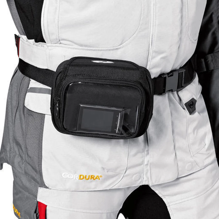 This handy tank bag is not large but can do a lot. Equipped with 2 magnets and a locking cable so that you can quickly place it on the tank. The safety bar also serves as a shoulder strap.