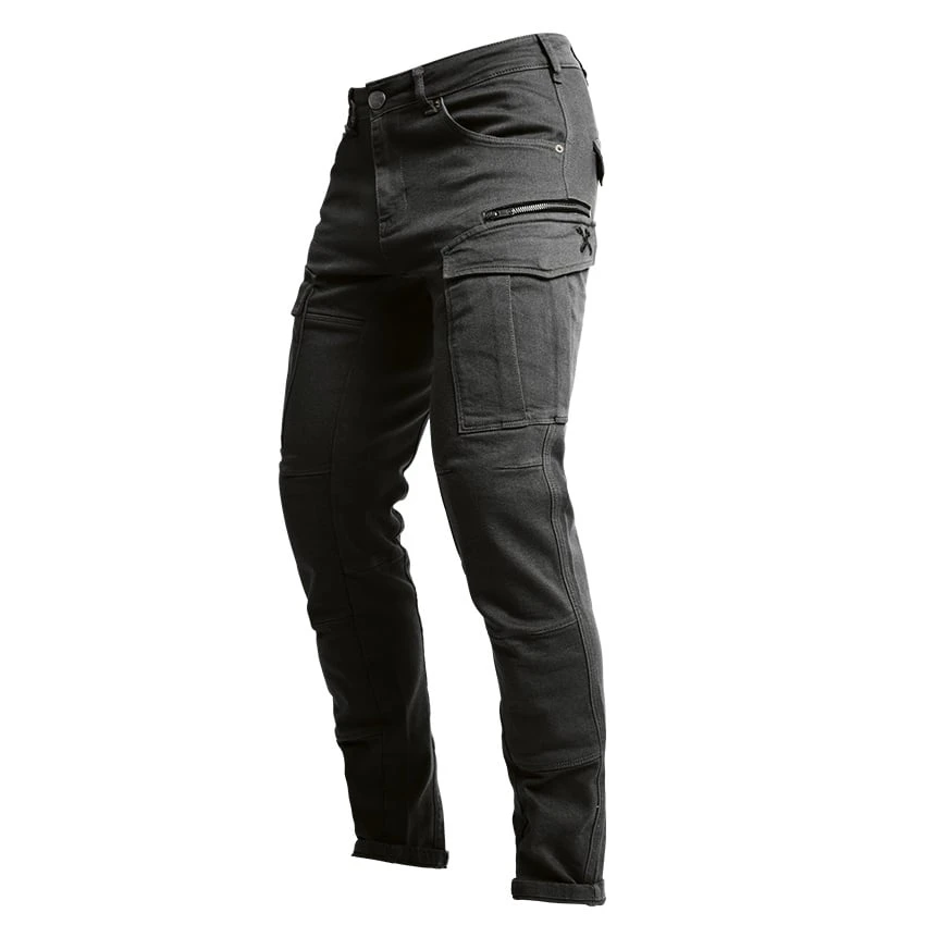 The John Doe Defender Mono Black is a single layer AAA certified cargo style motorcycle pants. Made from an XTM-Fiber® and stretch denim twill blend, including level 1 protectors on the knees and hips. The Single layer construction provides a cool and comfortable wearing experience on hot days. In addition to the standard front and back pockets that you find with normal jeans, the Defender also has classic cargo pockets and an additional YKK zippered pocket to give you enough space to keep all the things you need for your travels.