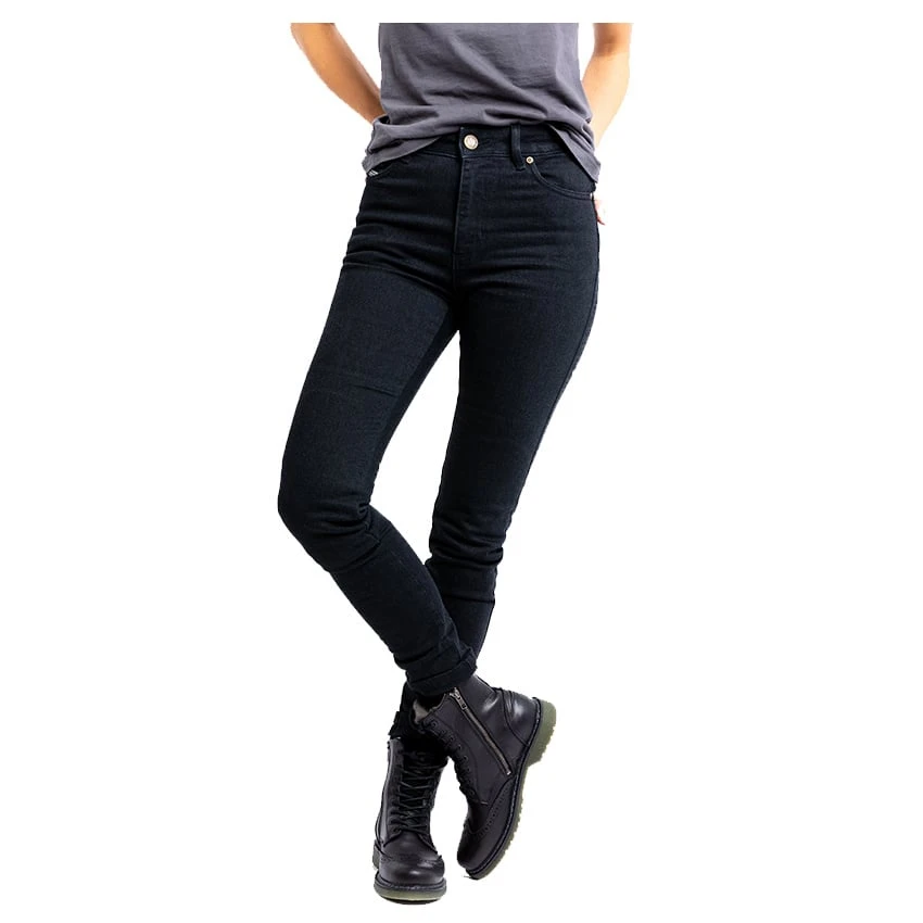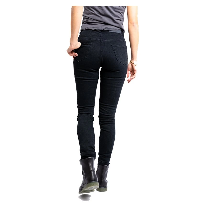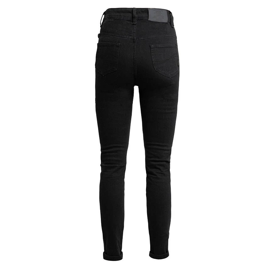 The Luna High combines John Doe’s XTM-Fiber® with denim outer fabric in a specialised weaving process, making these motorcycle jeans just one-layer. The single layer and stretch fabric guarantees for extreme comfort and well-fitting motorcycle jeans that fit and feel like normal jeans. Standard delivered with level 1 knee and hip protectors, which makes these motorcycle jeans an AAA-level protective motorcycle pants. Therefore these 5-pocket motor jeans with a high-waist design offer sufficient protection in every situation, in addition, the fabric is water repellent and you can enjoy ventilation thanks to the Coolmax technology.