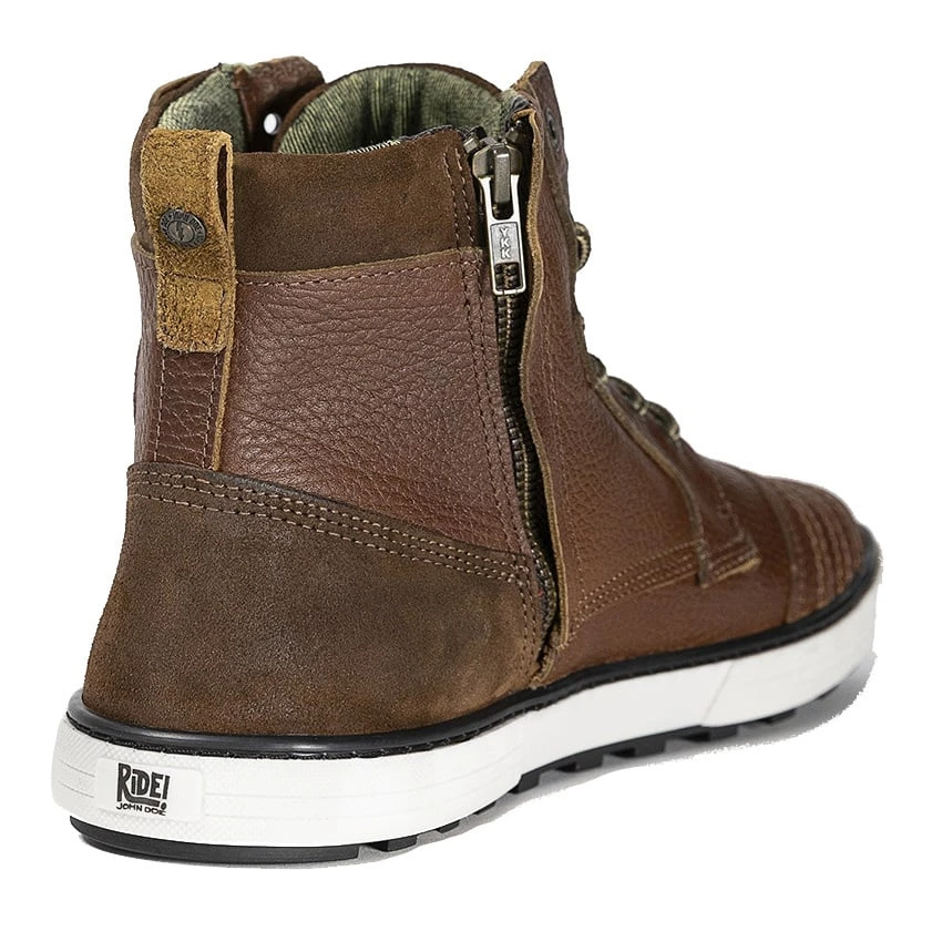 All John Doe’s motorcycle shoes also have a “water-stop function” (such as trekking and hiking shoes). That is, the tongue is designed to prevent water from seeping into the shoe. The ‘easy access’ to the boat via the zipper allows the rider to quickly and easily pull the shoe on and off. An oil-resistant, vibration-absorbing non-slip sole is also standard on our John Doe motorcycle boots. Details such as a John Doe logo embossed in leather on the ankle protection or the JDM metal emblem on the tab complete the classic design of the “Shifter” sneaker.