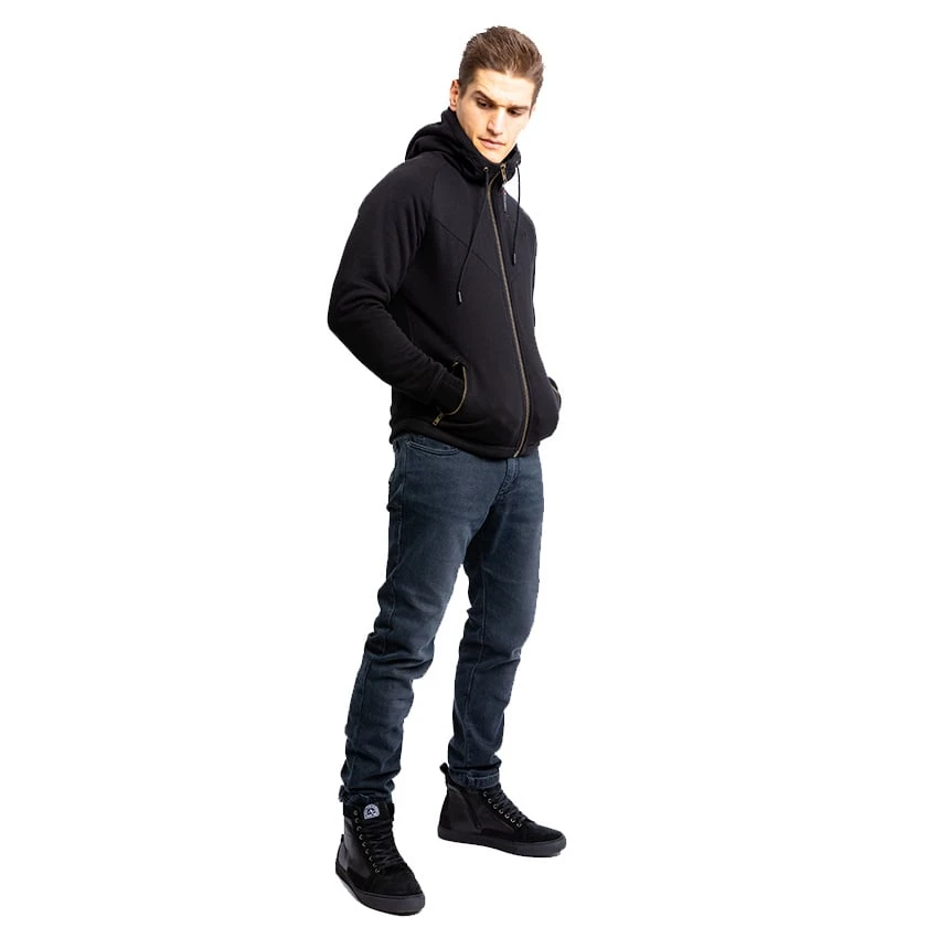 John Doe Hoodie 2.0 is made with XTM-Fiber® which provides the perfect balance of extreme protection and highest wearing comfort. The outer layer, made of abrasion resistant Aramid fibres, offers the highest protection in the case of a fall. The inner Coolmax® fibre blends regulate the skin temperature and fit perfectly.