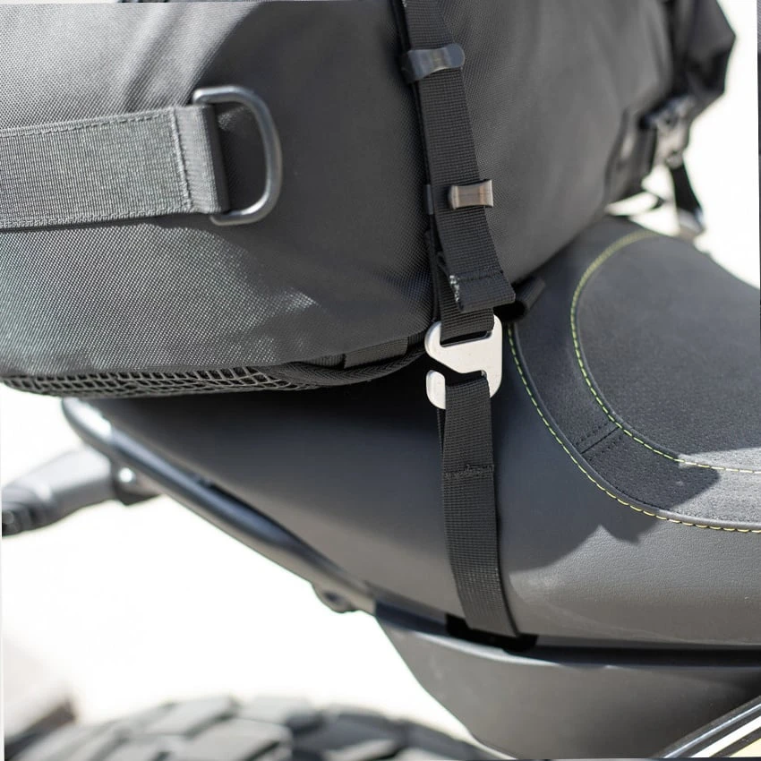 The kit consists of high quality hypalon & nylon webbing loops, that easily fit under the seat using the existing mounting locations. Once fitted, they provide strong hook-on points for any Kriega US-Drypack or US-Drypack Combo.When not in use the straps can be simply folded away, under the seat.