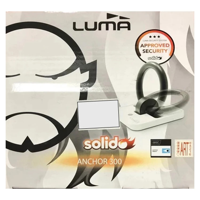 The smaller brother of the Luma Solido 500 Wall-Ground Anchor. The Anchor 300 from Luma is a ground anchor with a hardened steel construction, ideal for securing motorbikes using a chain and padlock. It is suitable for mounting on either the floor or a wall, and the Anchor is supplied with all required fixings.The white cover plate is made of plastic.
