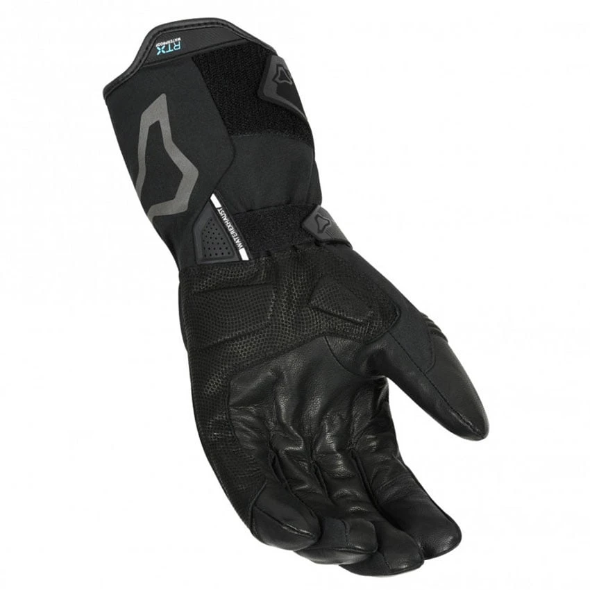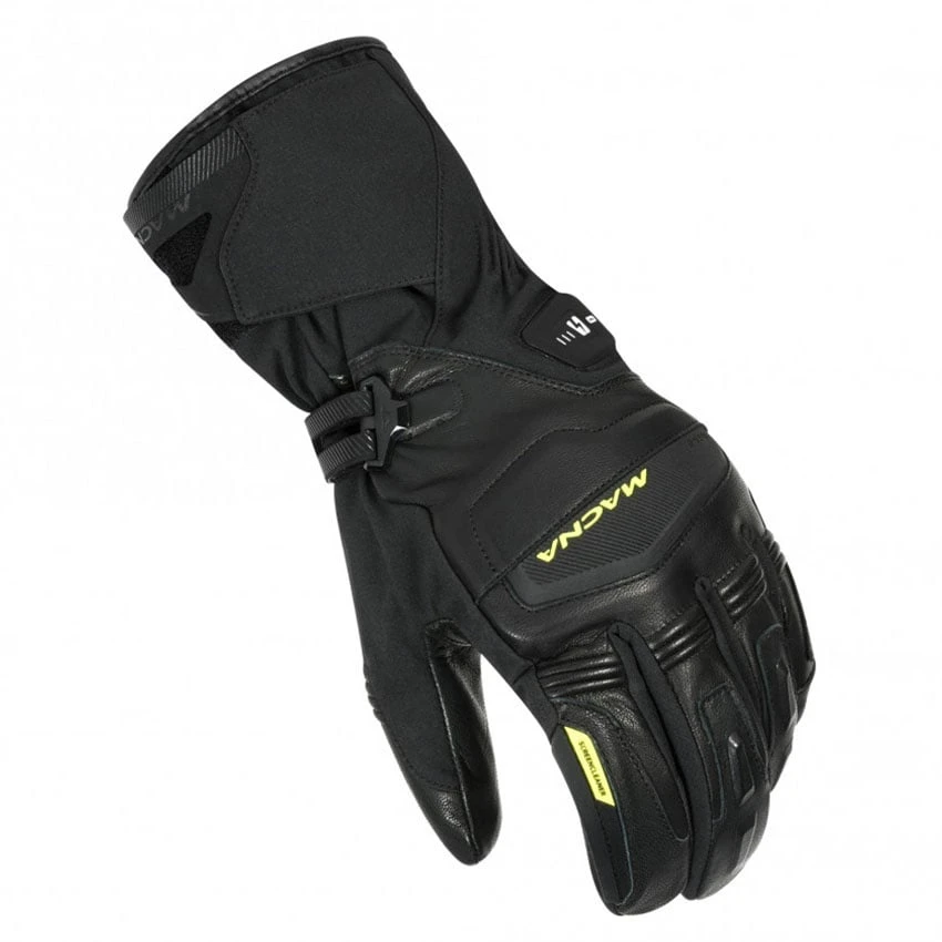 Heated motorcycle gloves with waterproof membrane, touch-tip function and visor wiper.