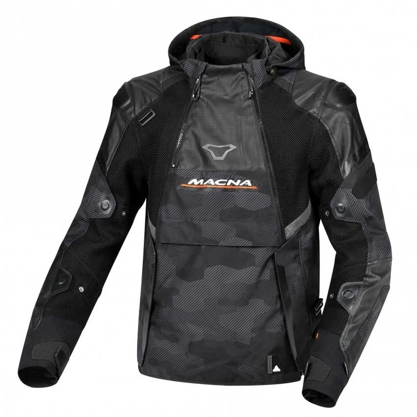 The Macna Bradical Anorak style motorcycle jacket is perfect for urban and off-road use. It features a waterproof* Raintex membrane and is standard equipped with level 1 protectors on the shoulders and elbows. Multiple pockets and adjustable at hips and cuff. The hoodie is removable but you can also secure it with the hoodie holder.Â