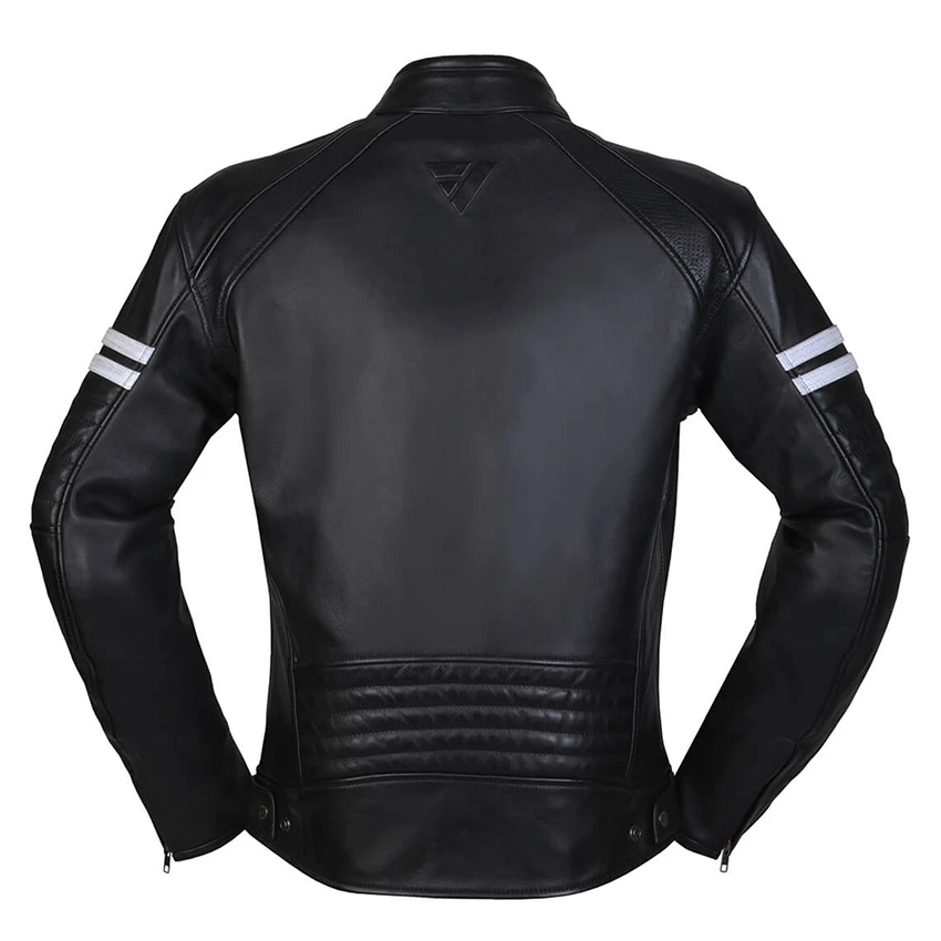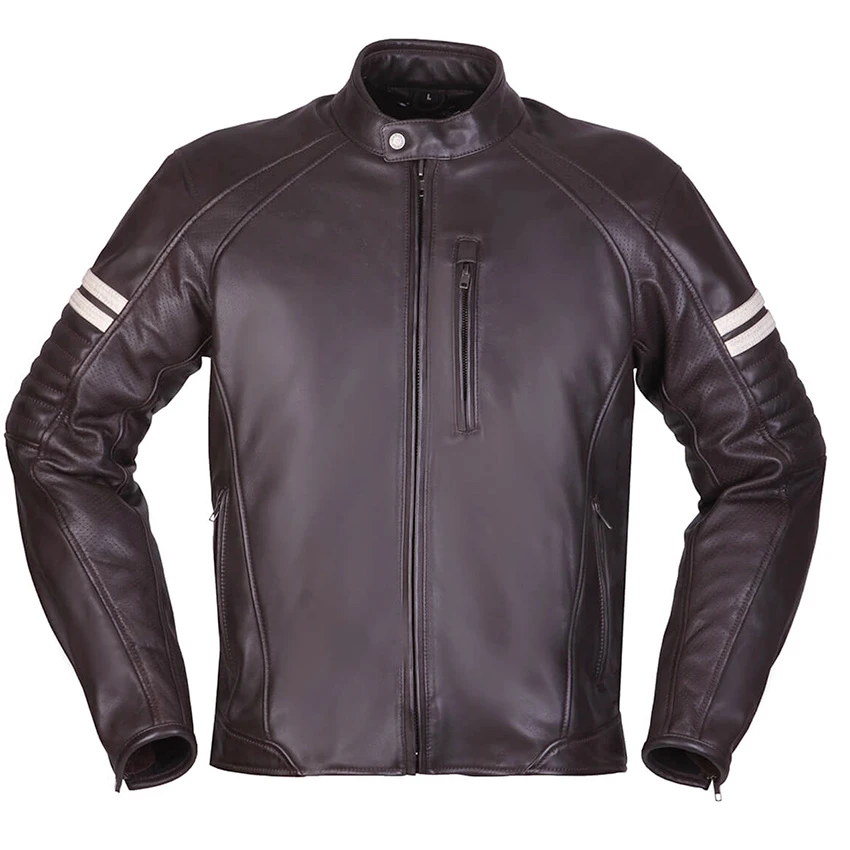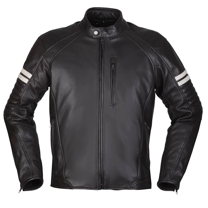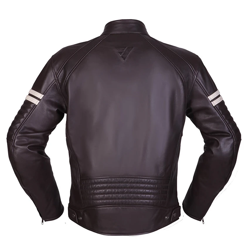 The anniversary jacket for Modeka‘s 75th birthday. This leather jacket promises you an absolutely casual look. The two stripes on the shoulders are reminiscent of the retro era. Paired with modern ventilation technology and many inside pockets, this is an extremely practical leather jacket. Standard with level 2 protectors on the shoulders and elbows.