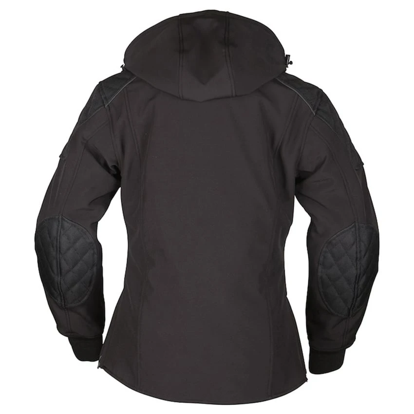 For the ladies novice motorcyclist or for experienced riders who want an ‘extra’ easy softshell jacket. Yes, the Clarke Lady is water resistant, but not if you whirl through the pouring rain for hours. Yes, the jacket is windproof and has a removable thermal lining, but in winter conditions the jacket is really a bit too cold. The hood is simply removable. For very little money you just buy a multi-season jacket that also looks timeless and fashionable. Shoulder and elbow protection included, back protection is optional.