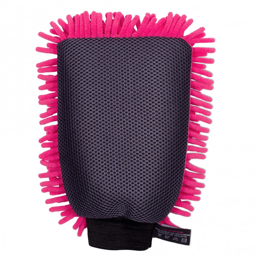 - Unique 2-in-1 design: Chenille microfiber wash glove front and waffle bug remover design reverse.