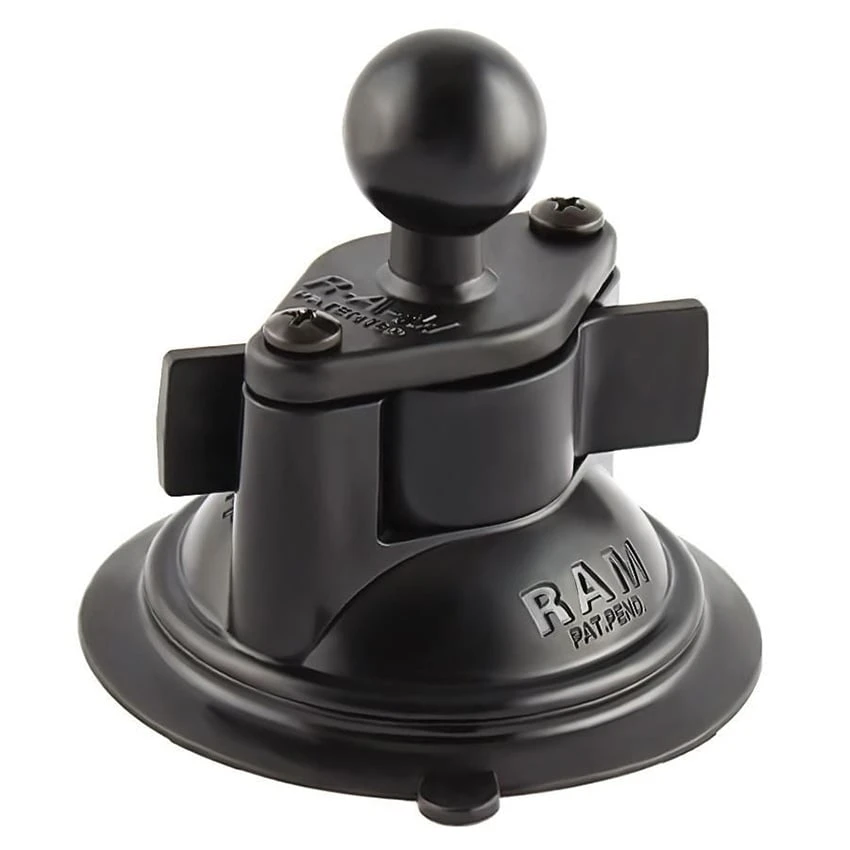 The RAM-B-224-1U suction cup base consists of a 3.3″ diameter RAM® Twist-Lockâ„¢ suction cup connected to a RAM-B-238U diamond base with a 1″ B size rubber ball. The RAM® Twist-Lockâ„¢ suction cup base is a fan favorite for use on vehicle windshields, and provides an extra strong hold on any smooth, nonporous surface. Complete your mount by attaching a B size RAM® double socket arm and device holder.