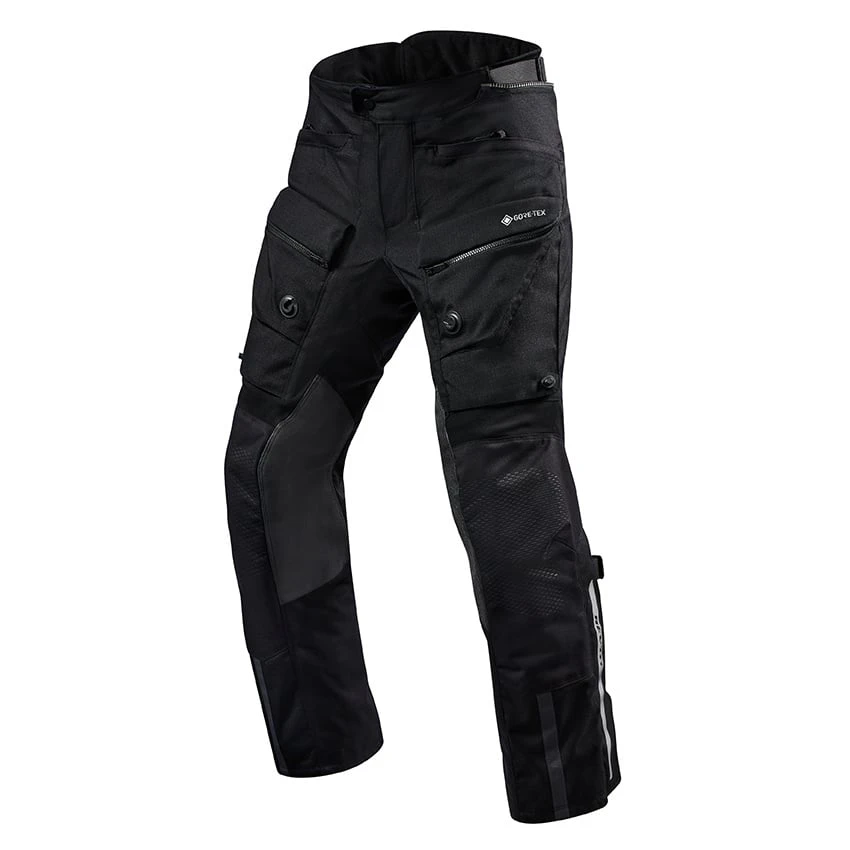Detachable Gore-Tex liner, detachable thermal liner and various ventilation panels and zippers, the Revit Defender 3 GTX motorcycle trousers offers it all. The outer shell is equipped with stretch inserts above the knee and under the waist to increase freedom of movement during active riding on or off the road. When the temperature starts to rise while riding, easily open the VCS|Ventilation panels on the upper legs and secure them using the magnetic Fidlock® closure. By opening all the vents you will create a steady airflow to keep your upper legs cool and comfortable.  Under the rugged outer shell constructed of ripstop material Revit has added Seesmart CE-level 1 hip protectors and Seeflex CE-Level 2 knee protectors. To further increase the abrasion resistance a protective multi-layer print is added on the high impact areas around the knees.