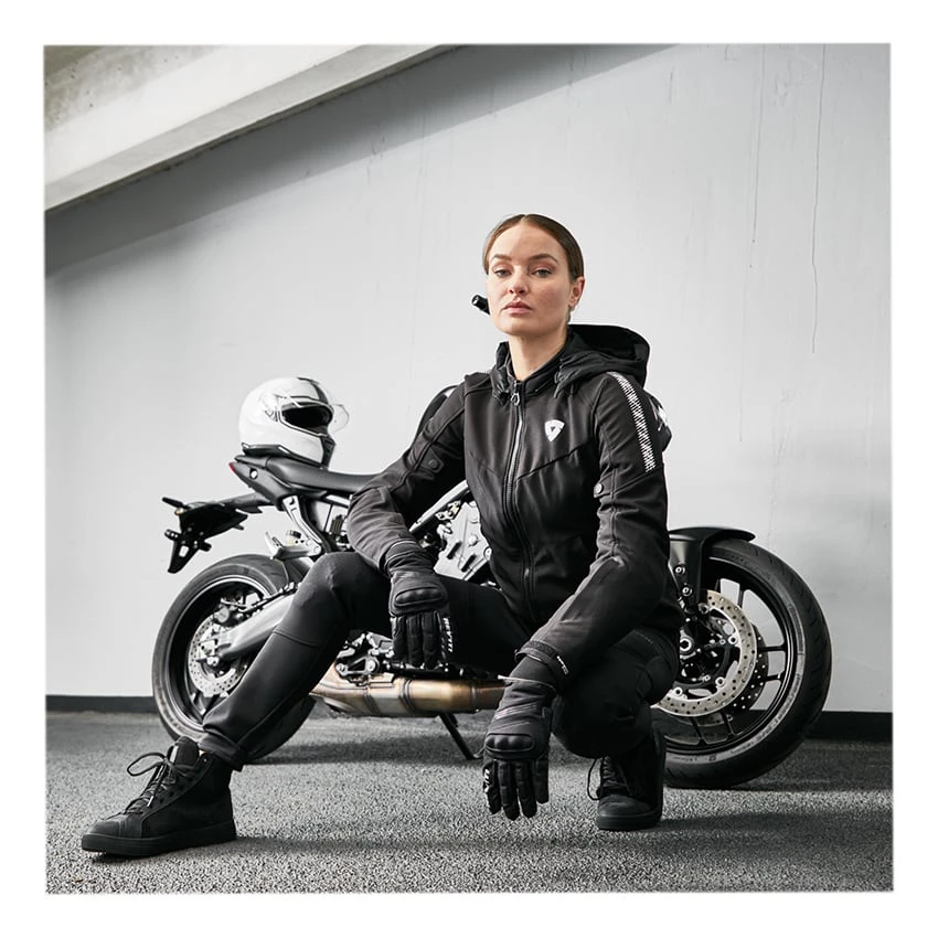A softshell, waterproof jacket with all the right features to keep you riding even when you’re caught in a downpour. Included is a fixed Hydratex|Mesh G-liner construction to make sure the rain stays out. And if you just happen to find yourself riding when it’s chillier out, the detachable thermal liner will keep you warm. The Proxy is almost all-black and has pronounced angular lines, white accents, and a sportier/ more aggressive design approach. Moreover, various adjustment points allow you to further tailor its race fit to your body. And since it has been created with the female-specific fit pattern, it’s meant to hug your curves in all the right places. For those who keep the hood on while riding, a snap button allows you to affix it to the upper back so it doesn’t flap around in the wind. Look cool, stay dry, and get the most out of your rainy-day rides with the Proxy H2O Ladies motorcycle jacket.