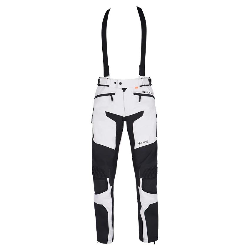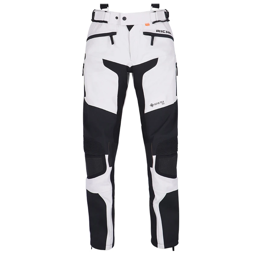 The Richa Armada GTX Pro motorcycle trousers offer everything you need for carefree rides on the motorcycle, from ventilation to gore-tex waterproofing and protection. Made from abrasion-resistant Superfabric material, 3L GORE-TEX Pro reinforced Armacor fabric and strategically placed leather patches for extra heat protection. The Armada GTX Pro is of course completely waterproof and with a high breathability thanks to the 3L Gore-Tex laminate. In warmer weather you can use the ventilation zippers for refreshing airflow for cooling down the body. Supplied as standard with D3O protectors on the knees and hips. For improved comfort, the Armada GTX Pro motorcycle pants incorporates stretch panels, a storm flap, connection zipper and removable suspenders.