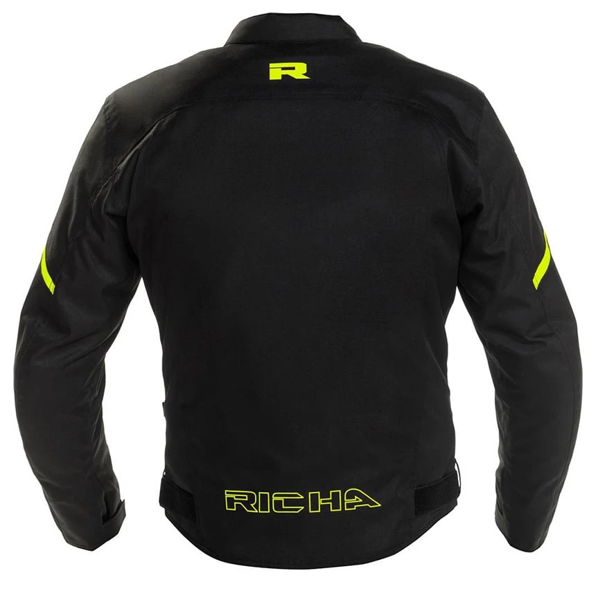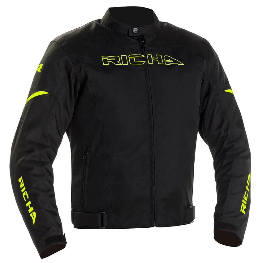 Affordable motorcycle jacket made of high-quality materials and equipped with a waterproof membrane.