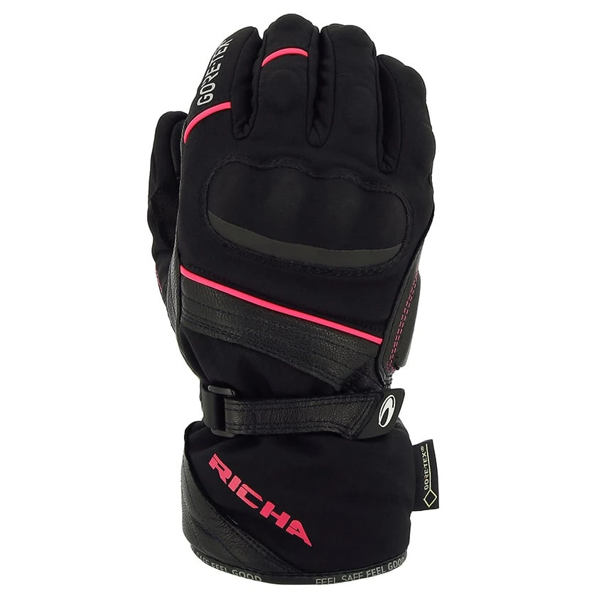 The Diana Gore-Tex dames motorhandschoen is Richa’s favourite because of their great fit and that comfortable combination of leather and textile. A breathable Gore-Tex membrane and 3M thinsulation work together to keep your hands dry and warm, and D3O material protects your knuckles. With the strap at your wrist you can make them fit perfectly. A winter must have!