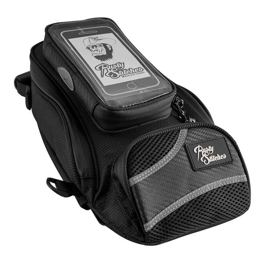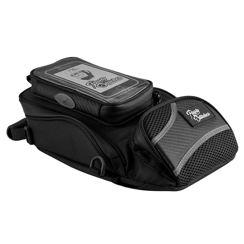 The Rusty Stitches James Junior tank bag has a number of magnets that ensure that the bag fits and stays on almost every tank. Comes with a waterproof cover and a special shoulder strap. With this shoulder strap you can transform the tank bag into a backpack in no time.