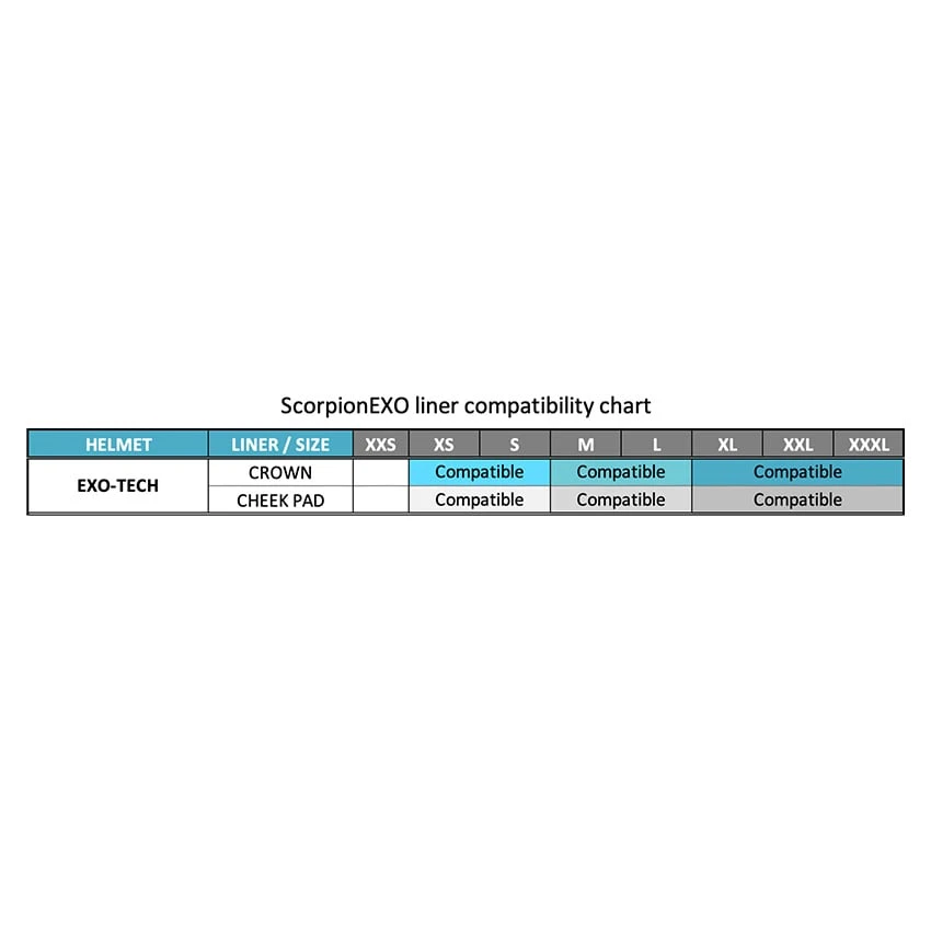 - Replacement inner lining set for the Scorpion Exo-Tech motorcycle helmet.