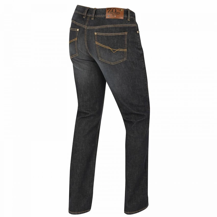 The Rony motorjeans is made of stretch denim fabric in a regular fit. Light and comfortable to wear every day. Equipped with removable CE protectors on the knees. Pockets are provided to accommodate hip protectors (not included).