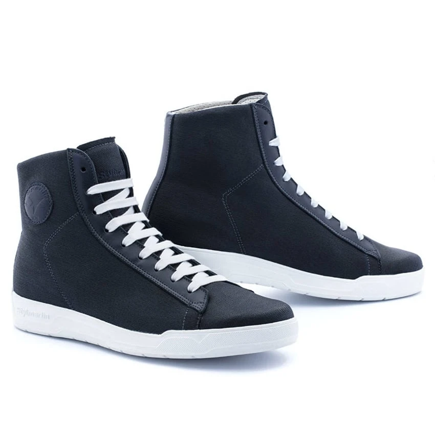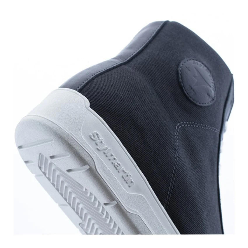 The Stylmartin Grid enters the sneaker collection as a summer model. It is inspired by the technical principles of the CORE model, however, it is crafted of different materials, more suited to hot weather: the textile upper is lightly waxed to provide water repellency, able to cope with humidity and light showers, whilst the absence of an internal membrane ensures the highest level of ventilation for the foot. Its unique blue colour makes for a striking personality.