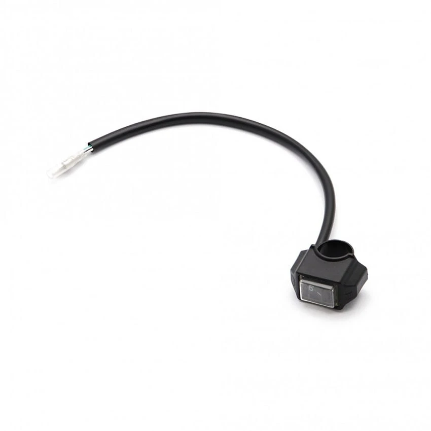 Splash-proof On/Off switch for mounting on the handlebar. The particularly compact design in a break-proof plastic casing make it easy to use as a light switch for the auxiliary lighting or as an on/off switch for your GPS navigation system.
