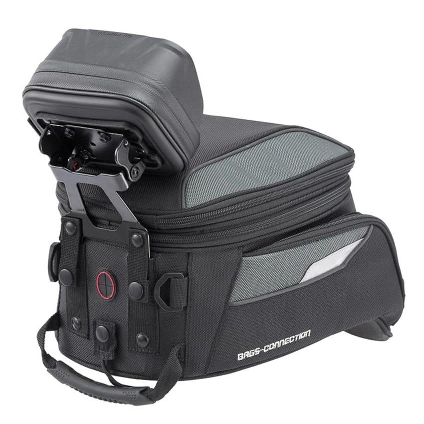The GPS mount can easily be attached to EVO tank bags (except for the Micro and Yukon 90). The pivotable base plate supports nearly any motorcycle navigation device as well as Navi cases and Pro bags. Now, the navigation instructions are always in plain sight, without blocking the view of the cockpit.