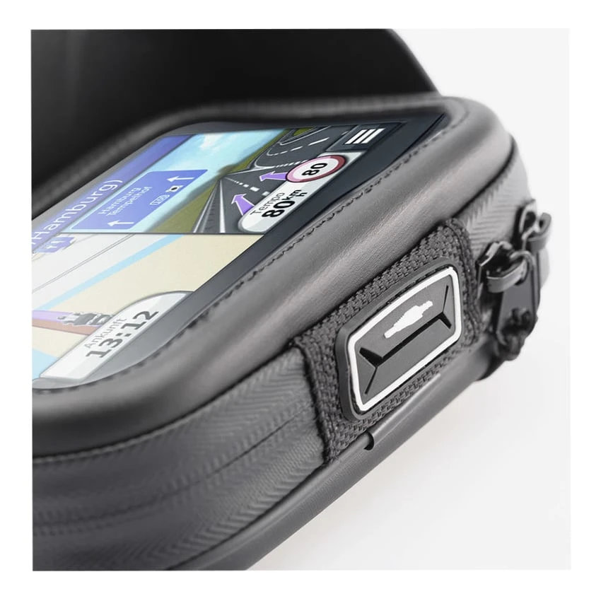 The Navi Case Pro is a navigation holder with an integrated sun visor. The Navi Case Pro is ideal for non-waterproof (car) navigation systems and smartphones. The case is equipped with a cable entry for headphones or power cable.