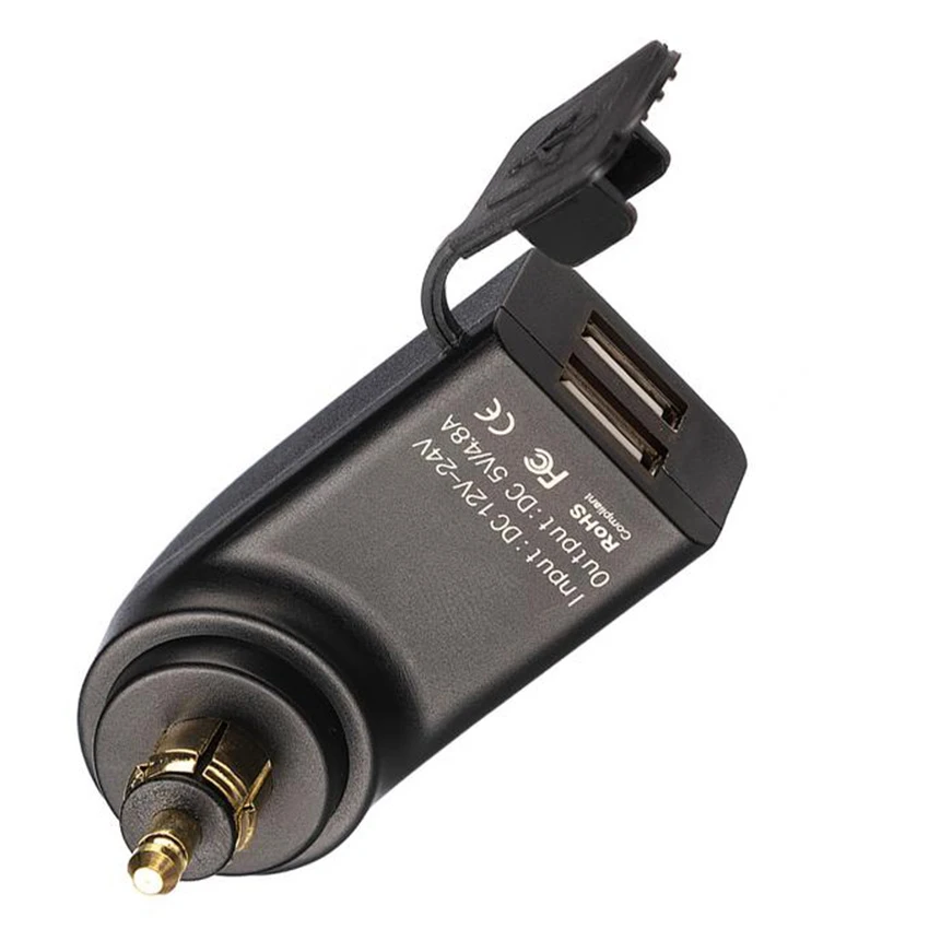 Ultimateaddons Din Hella 4.8 Amp motorcycle accessory charger with 2 USB ports is the ideal solution for charging a wide range of mobile devices. Use the direct power from your female din jack to keep gadgets charged while you’re on the go. This adapter is simple to set up, the male DIN connector fits into the existing female din socket on the motorcycle (looks like a small 12v cigarette lighter socket) and then connect the compatible USB charger cables directly to your device. There is a water resistant rubber cover to help protect the USB ports when they are not in use.