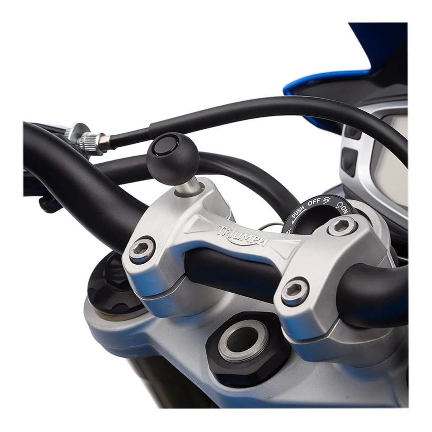 This motorcycle attachment is designed to replace one of the existing handlebar clamp bolts to allow a range of devices to be attached to a motorcycle / scooter.Â